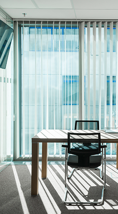 Add a modern and elegant touch to your interiors with our vertical blinds. Perfect for large windows and sliding doors, they provide easy light control, privacy and style. Choose from a variety of fabrics and finishes to suit any space.