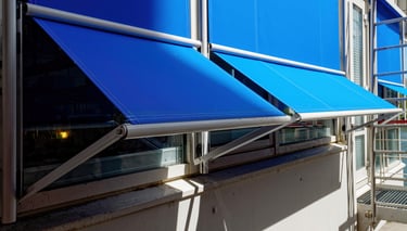 Pivot Arm Awnings offer excellent sun control and airflow while maintaining a sleek, unobtrusive look. Designed with an outward projection, these awnings angle the fabric away from the window, reducing heat and glarewhile maintaining visibility andr airflow. Their robust arm mechanism allows the fabric to move in an arc, making them ideal for high windows or windy areas where traditional awnings might not hold up as well. With both manual and motorised options available, pivot arm awnings provide a stylish and practical solution for keeping interiors cool, light filtered, and private.